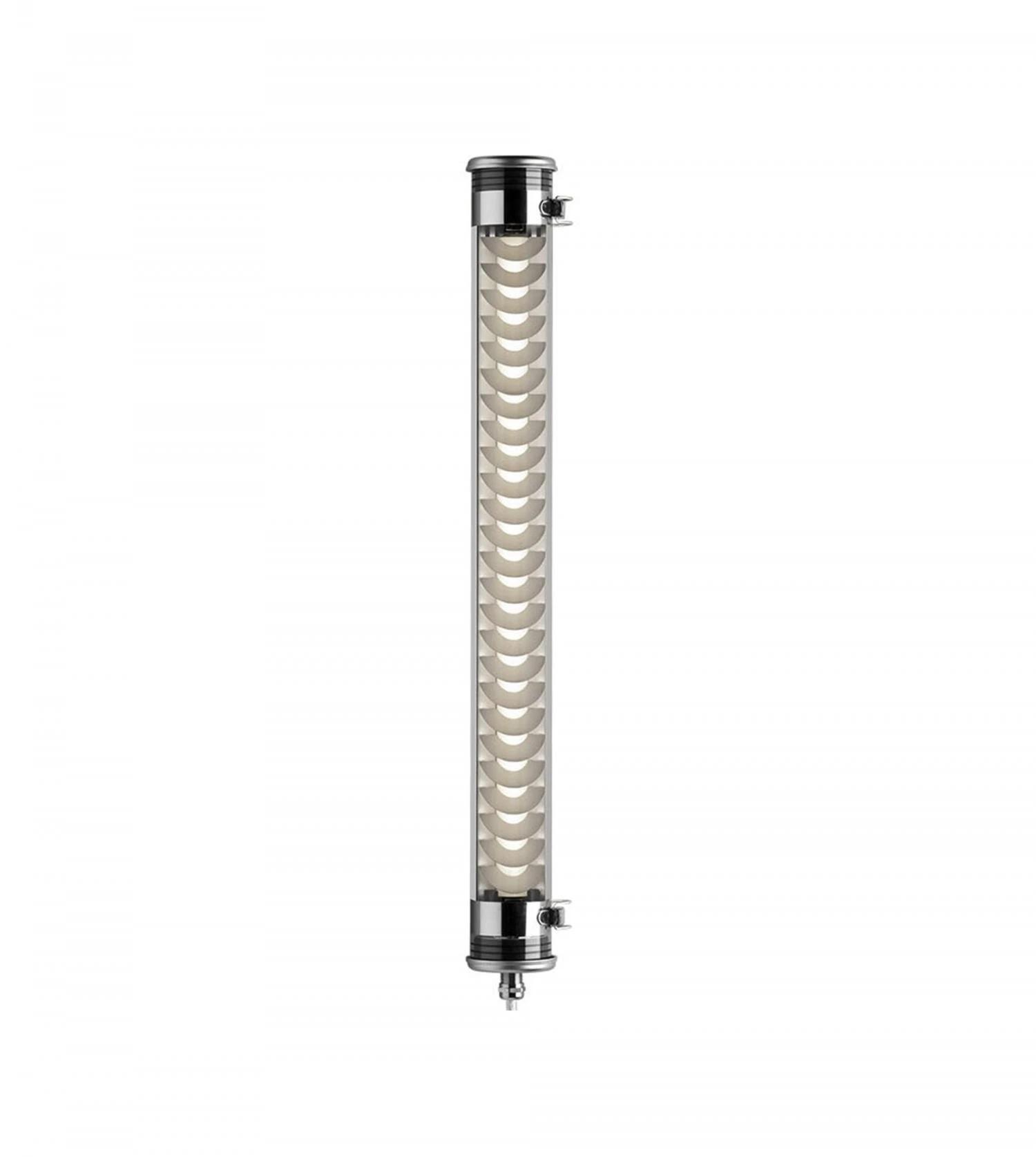 Matériaux : polycarbonate qualité cristal (tube), inox marine laqué (colliers et flasques), aluminium anodisé (réflecteur)