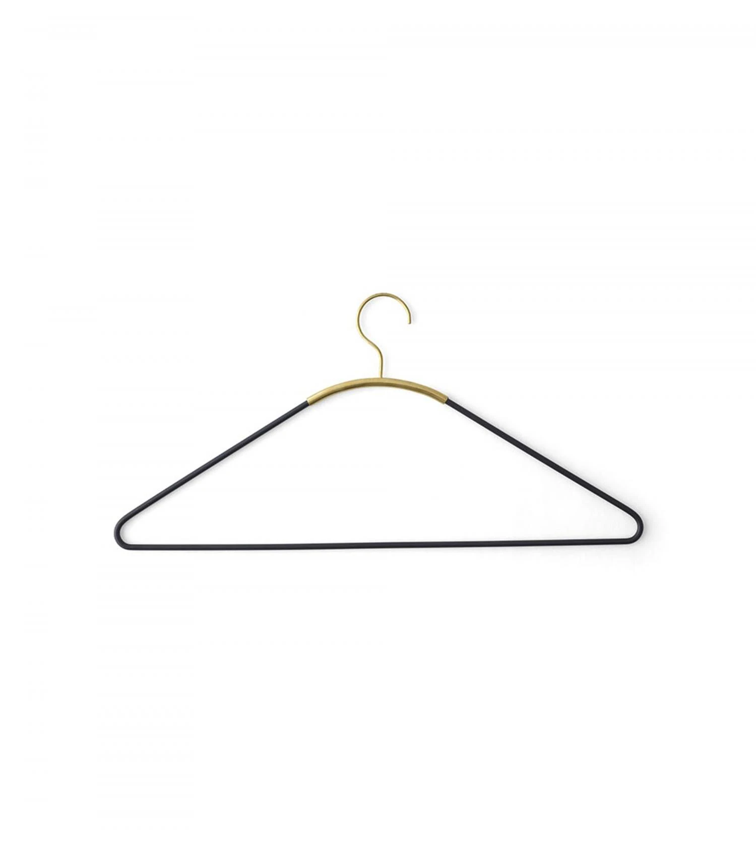 Le cintre Ava réinterprète le cintre triangulaire classique par sa combinaison de matériaux et de détails. Il existe une version d’Ava en acier laqué noir, maintenue par une pièce en laiton ou laqué blanc avec une pièce d’acier.