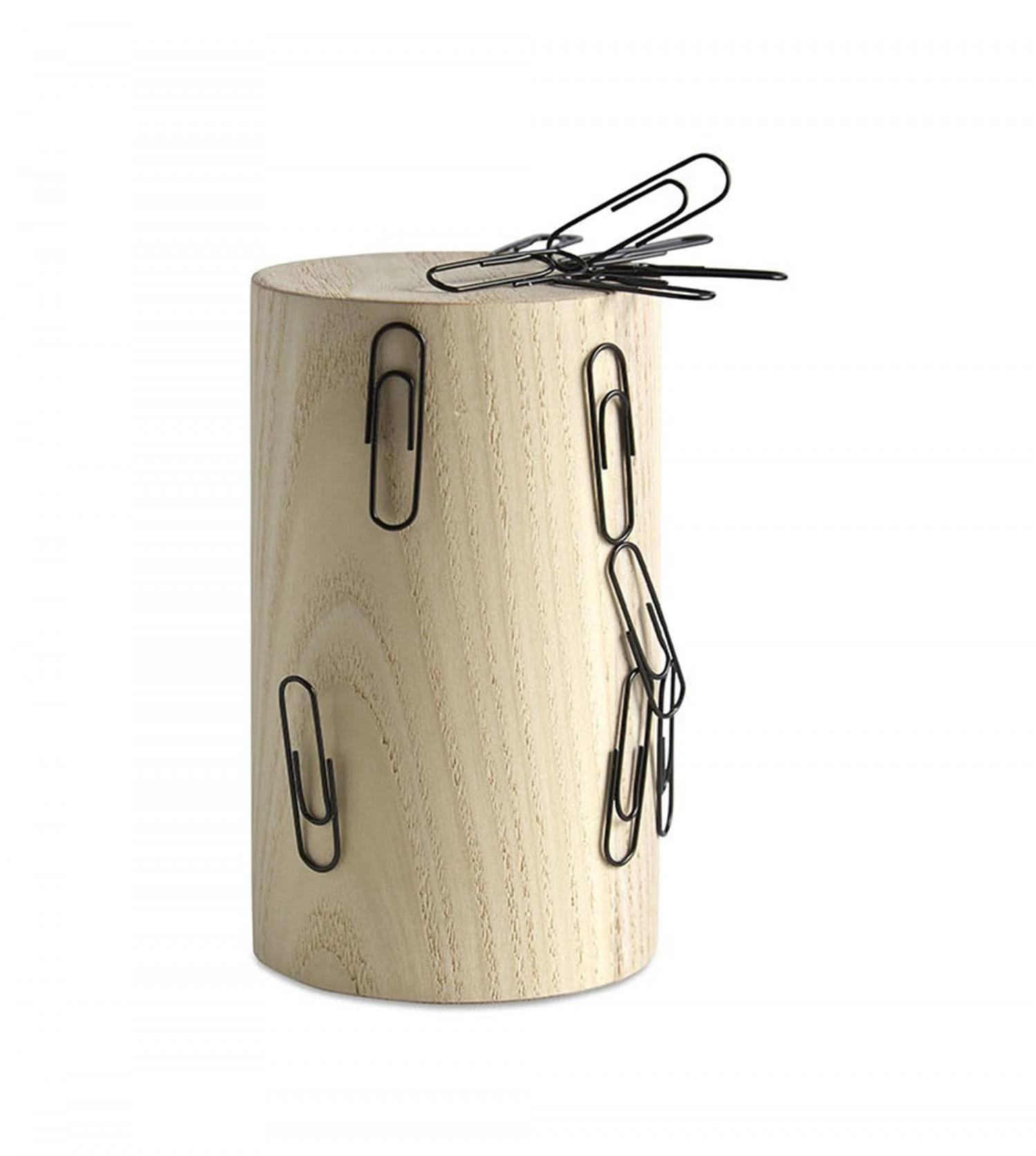 Cylindre de bois aimanté, fourni avec 10 trombones noirs