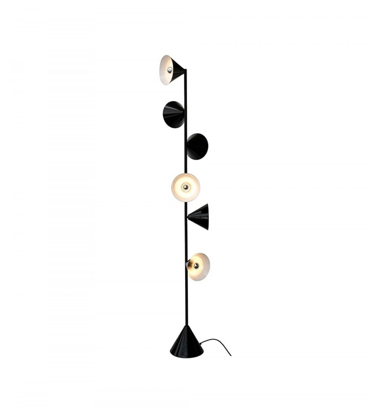 Finitions: Métal laqué à la main. Blanc ou noir (intérieur du cône également disponible en laiton), autres coloris sur demande.